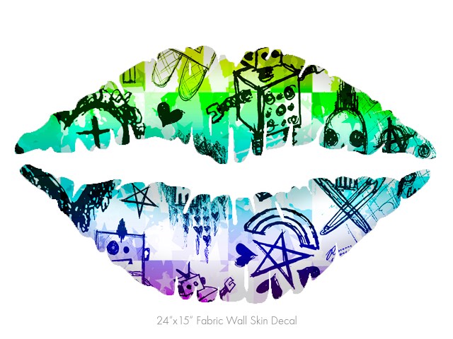 Scene Kid Sketches Rainbow - Kissing Lips Fabric Wall Skin Decal measures 24x15 inches