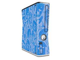 Skull Sketches Blue Decal Style Skin for XBOX 360 Slim Vertical