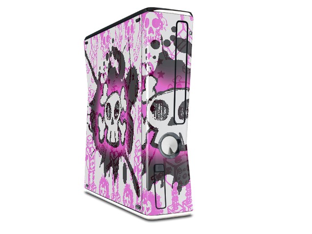 Cartoon Skull Pink Decal Style Skin for XBOX 360 Slim Vertical