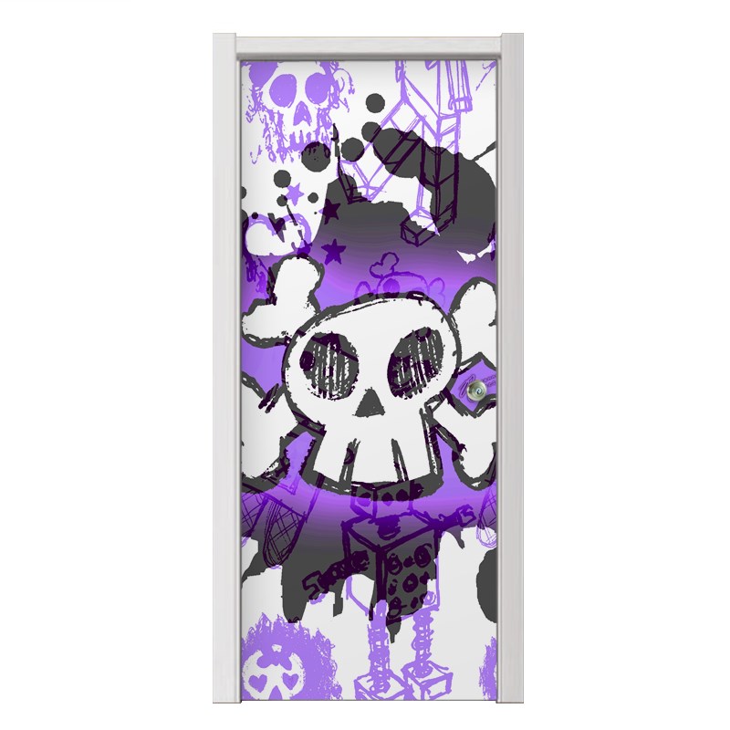Cartoon Skull Purple Door Skin (fits doors up to 34x84 inches)