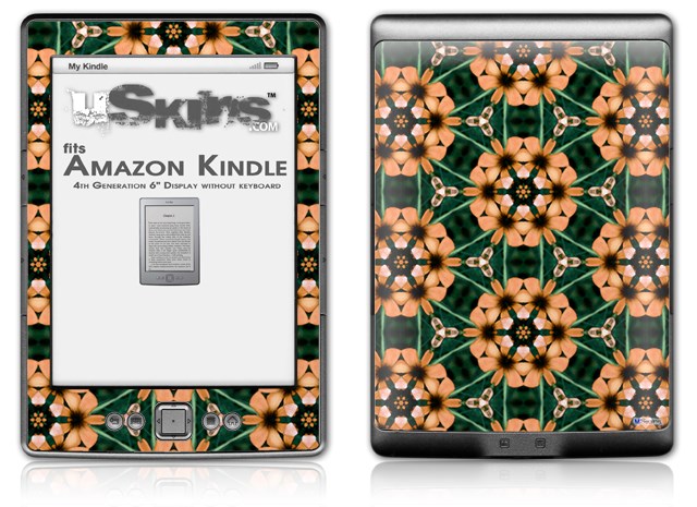 Floral Pattern Orange - Decal Style Skin (fits 4th Gen Kindle with 6inch display and no keyboard)