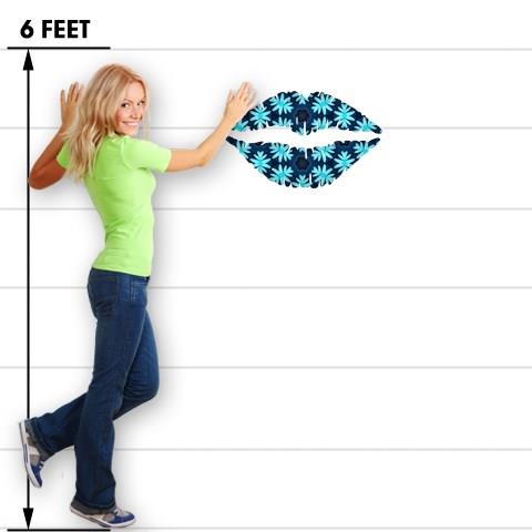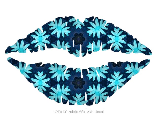 Abstract Floral Blue - Kissing Lips Fabric Wall Skin Decal measures 24x15 inches