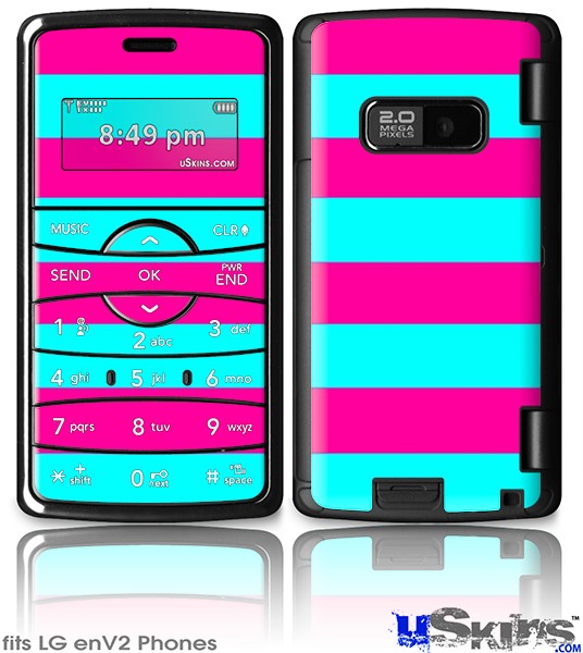 LG enV2 Skin - Psycho Stripes Neon Teal and Hot Pink
