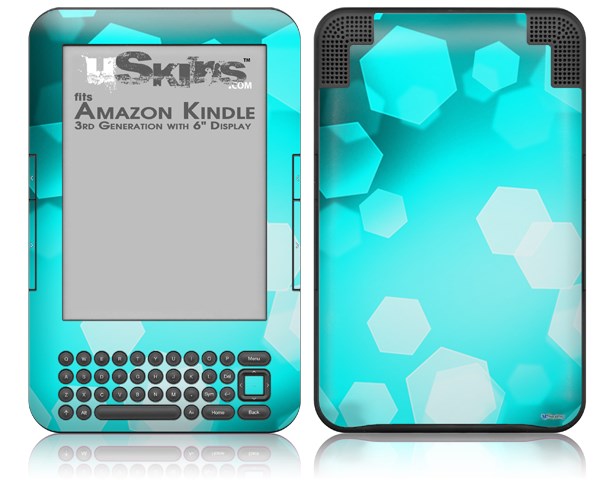 Bokeh Hex Neon Teal - Decal Style Skin fits Amazon Kindle 3 Keyboard (with 6 inch display)