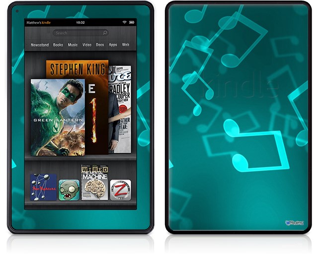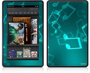 Amazon Kindle Fire (Original) Decal Style Skin - Bokeh Music Neon Teal