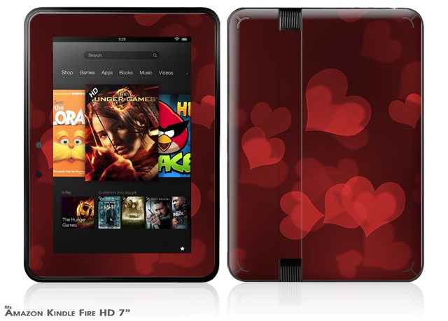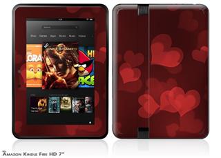 Bokeh Hearts RedDecal Style Skin fits 2012 Amazon Kindle Fire HD 7 inch