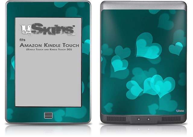 Bokeh Hearts Neon Teal - Decal Style Skin (fits Amazon Kindle Touch Skin)