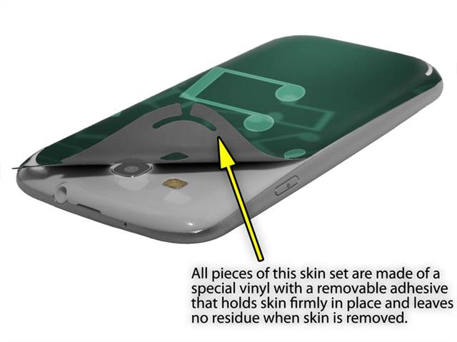 • Decal style vinyl skin covers front and back of Samsung Galaxy S III S3 phone.