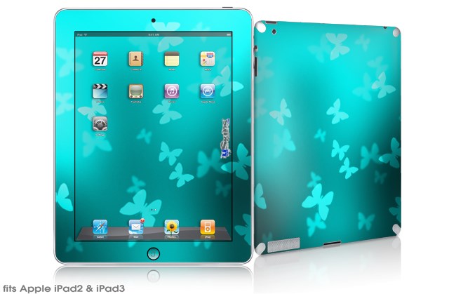 iPad Skin - Bokeh Butterflies Neon Teal (fits iPad2 and iPad3)