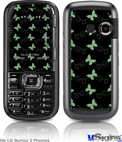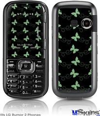 LG Rumor 2 Skin - Pastel Butterflies Green on Black