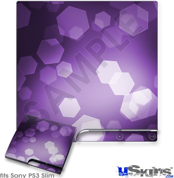 Decal Skin compatible with Sony PS3 Slim Bokeh Hex Purple