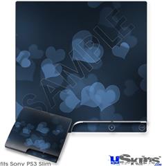 Decal Skin compatible with Sony PS3 Slim Bokeh Hearts Blue