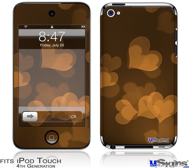 iPod Touch 4G Decal Style Vinyl Skin - Bokeh Hearts Orange