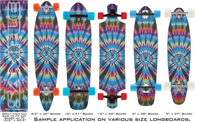 Our longboard skins are made so that one size fits boards up to 10” wide x 42” long. This means after applying the skin it you will trimming to fit you’re the shape of your board with a sharp utility knife.