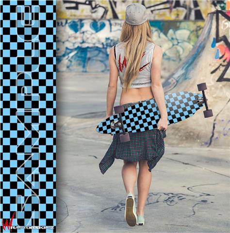 Checkers Blue - Decal Style Vinyl Wrap Skin fits Longboard Skateboards up to 10"x42" (LONGBOARD NOT INCLUDED)