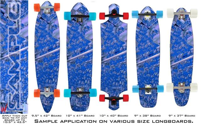 Our longboard skins are made so that one size fits boards up to 10” wide x 42” long. This means after applying the skin it you will trimming to fit you’re the shape of your board with a sharp utility knife.