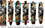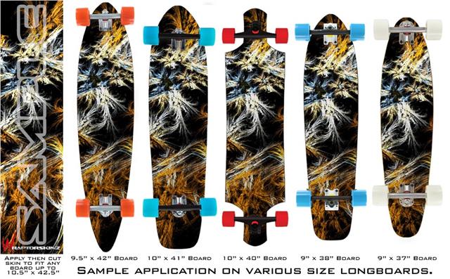 Our longboard skins are made so that one size fits boards up to 10” wide x 42” long. This means after applying the skin it you will trimming to fit you’re the shape of your board with a sharp utility knife.