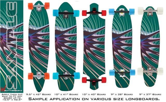 Our longboard skins are made so that one size fits boards up to 10” wide x 42” long. This means after applying the skin it you will trimming to fit you’re the shape of your board with a sharp utility knife.