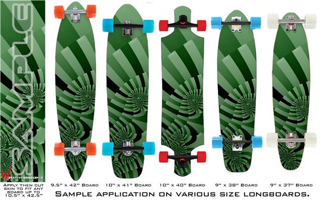 Our longboard skins are made so that one size fits boards up to 10” wide x 42” long. This means after applying the skin it you will trimming to fit you’re the shape of your board with a sharp utility knife.