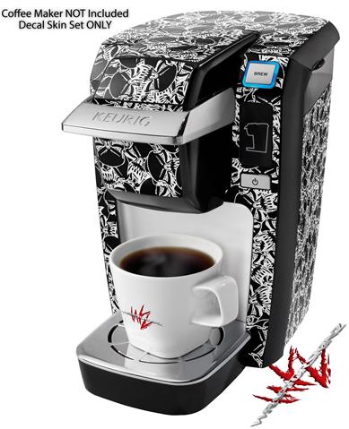 Decal Style Vinyl Skin compatible with Keurig K10 / K15 Mini Plus Coffee Makers Scattered Skulls Black (KEURIG NOT INCLUDED)