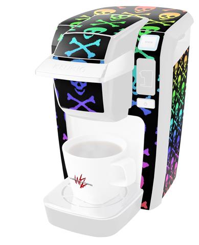 Decal Style Vinyl Skin compatible with Keurig K10 / K15 Mini Plus Coffee Makers Skull and Crossbones Rainbow (KEURIG NOT INCLUDED)