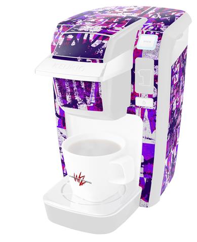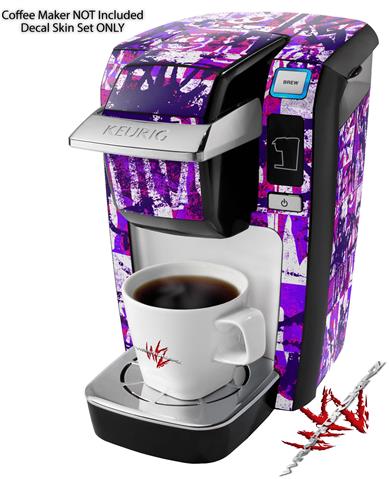 Decal Style Vinyl Skin compatible with Keurig K10 / K15 Mini Plus Coffee Makers Purple Checker Graffiti (KEURIG NOT INCLUDED)