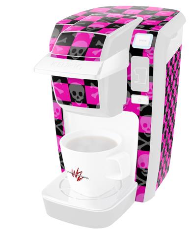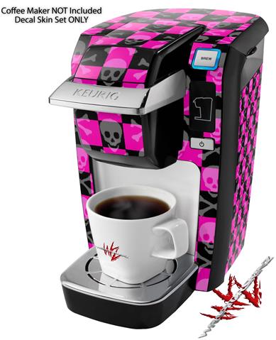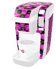 Decal Style Vinyl Skin compatible with Keurig K10 / K15 Mini Plus Coffee Makers Skull and Crossbones Checkerboard (KEURIG NOT INCLUDED)