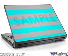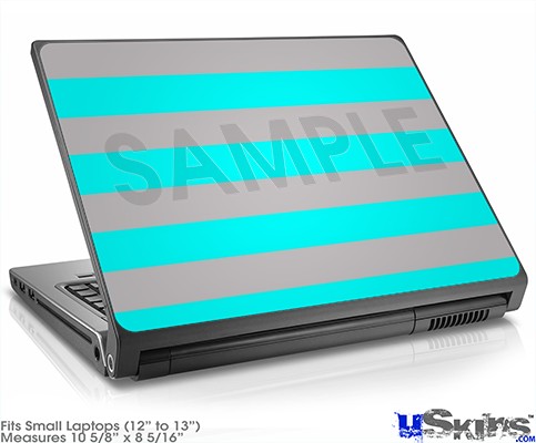 Laptop Skin (Small) - Psycho Stripes Neon Teal and Gray