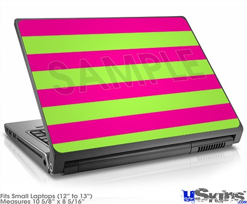 Laptop Skin (Small) - Psycho Stripes Neon Green and Hot Pink