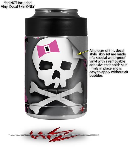 Skin Decal Wrap for Yeti Colster, Ozark Trail and RTIC Can Coolers - Pink Bow Skull (COOLER NOT INCLUDED)