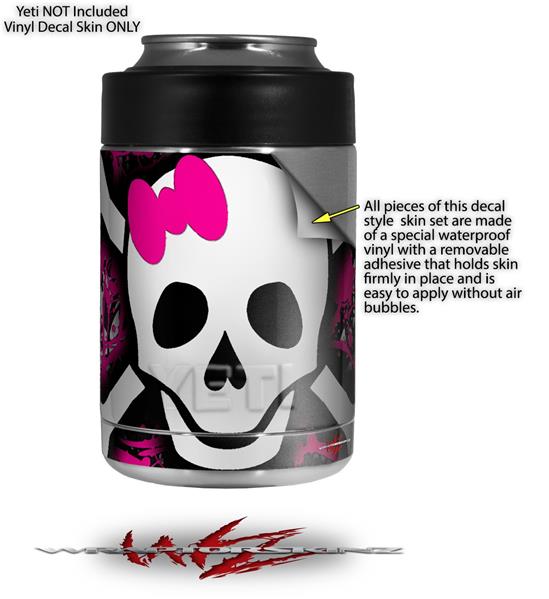Skin Decal Wrap for Yeti Colster, Ozark Trail and RTIC Can Coolers - Splatter Girly Skull (COOLER NOT INCLUDED)