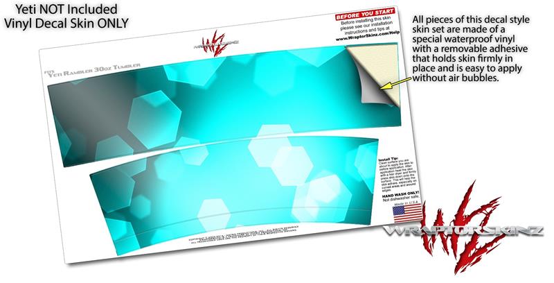 Skin Decal Wrap for Yeti Tumbler Rambler 30 oz Bokeh Hex Neon Teal (TUMBLER NOT INCLUDED)