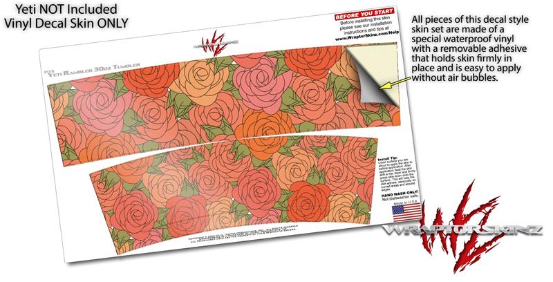 Skin Decal Wrap for Yeti Tumbler Rambler 30 oz Flowers Pattern Roses 06 (TUMBLER NOT INCLUDED)