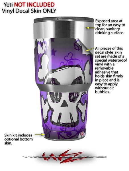 Skin Decal Wrap for Yeti Tumbler Rambler 30 oz Cartoon Skull Purple (TUMBLER NOT INCLUDED)