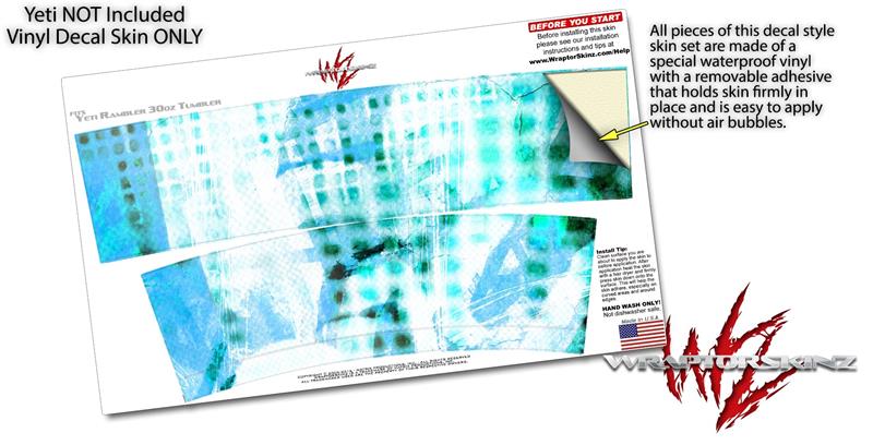 Skin Decal Wrap for Yeti Tumbler Rambler 30 oz Electro Graffiti Blue (TUMBLER NOT INCLUDED)
