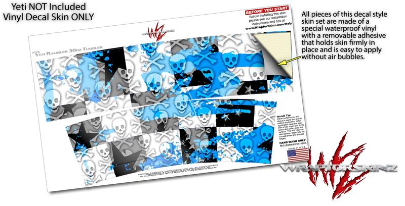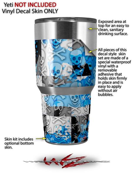 Skin Decal Wrap for Yeti Tumbler Rambler 30 oz Checker Skull Splatter Blue (TUMBLER NOT INCLUDED)