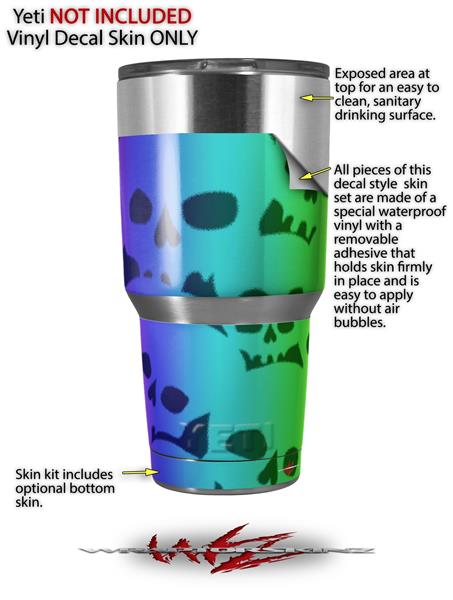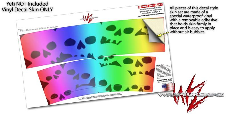 Skin Decal Wrap for Yeti Tumbler Rambler 30 oz Rainbow Skull Collection (TUMBLER NOT INCLUDED)
