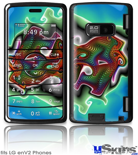 Skin covers front and back of LG enV2 cell phone.