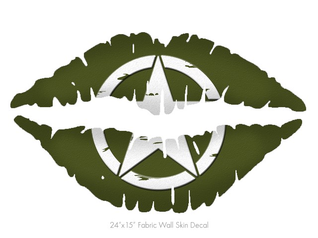 Distressed Army Star - Kissing Lips Fabric Wall Skin Decal measures 24x15 inches