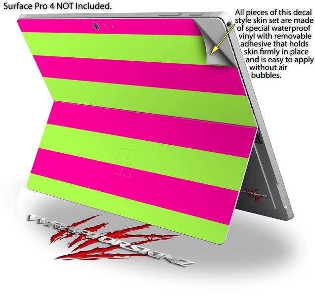 Psycho Stripes Neon Green and Hot Pink - Decal Style Vinyl Skin (fits Microsoft Surface Pro 4)