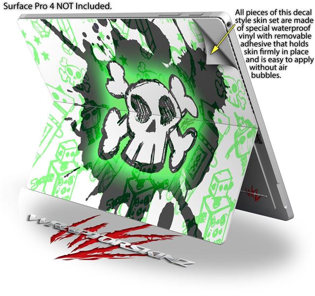 Cartoon Skull Green - Decal Style Vinyl Skin (fits Microsoft Surface Pro 4)