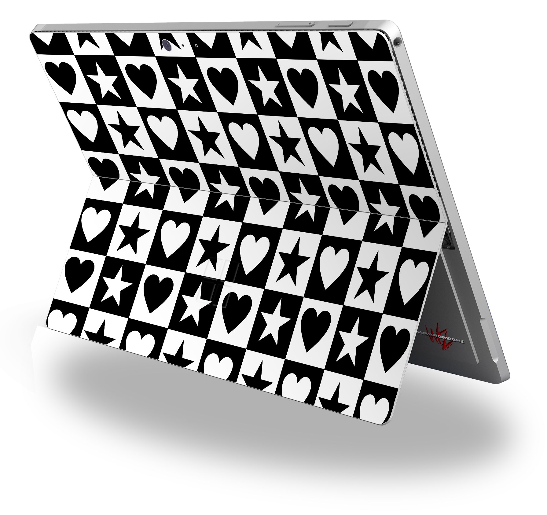 Hearts And Stars Black and White - Decal Style Vinyl Skin (fits Microsoft Surface Pro 4)