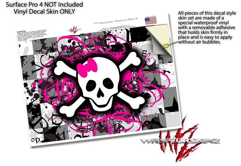 Splatter Girly Skull - Decal Style Vinyl Skin (fits Microsoft Surface Pro 4)