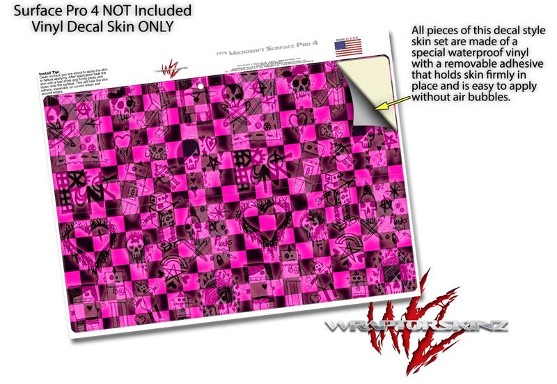Pink Checkerboard Sketches - Decal Style Vinyl Skin (fits Microsoft Surface Pro 4)