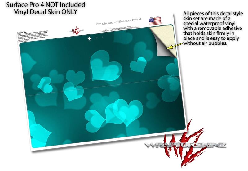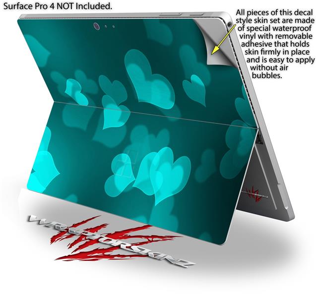 Bokeh Hearts Neon Teal - Decal Style Vinyl Skin (fits Microsoft Surface Pro 4)