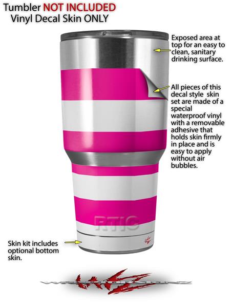 WraptorSkinz Skin Wrap compatible with RTIC 30oz ORIGINAL 2017 AND OLDER Tumblers Psycho Stripes Hot Pink and White (TUMBLER NOT INCLUDED)
