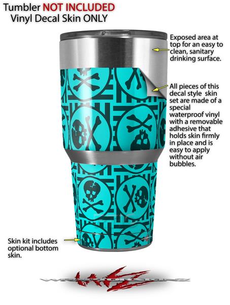 WraptorSkinz Skin Wrap compatible with RTIC 30oz ORIGINAL 2017 AND OLDER Tumblers Skull Patch Pattern Blue (TUMBLER NOT INCLUDED)