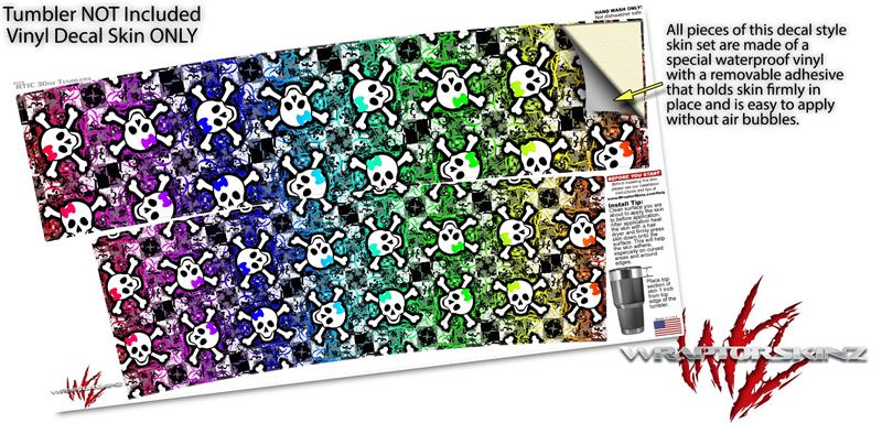 WraptorSkinz Skin Wrap compatible with RTIC 30oz ORIGINAL 2017 AND OLDER Tumblers Splatter Girly Skull Rainbow (TUMBLER NOT INCLUDED)