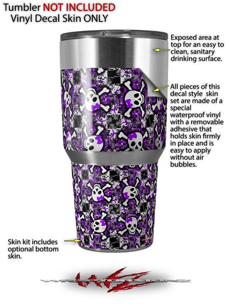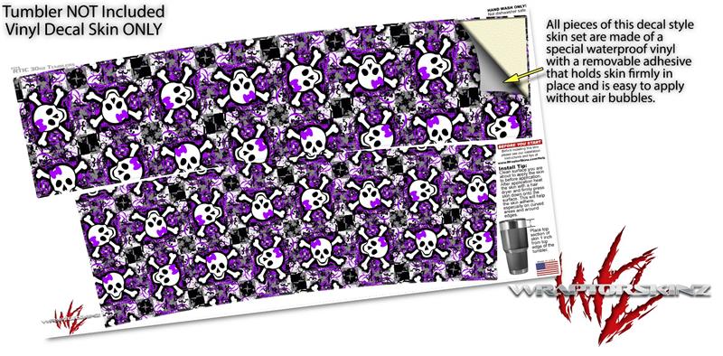 WraptorSkinz Skin Wrap compatible with RTIC 30oz ORIGINAL 2017 AND OLDER Tumblers Splatter Girly Skull Purple (TUMBLER NOT INCLUDED)