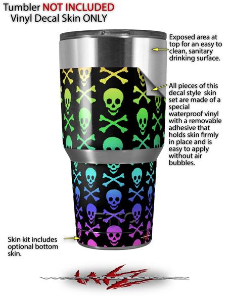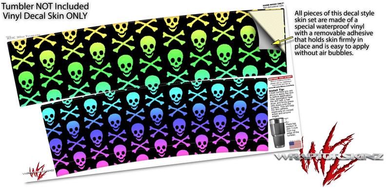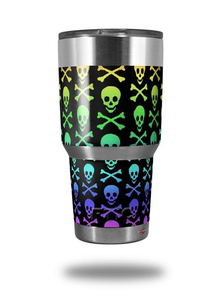 WraptorSkinz Skin Wrap compatible with RTIC 30oz ORIGINAL 2017 AND OLDER Tumblers Skull and Crossbones Rainbow (TUMBLER NOT INCLUDED)